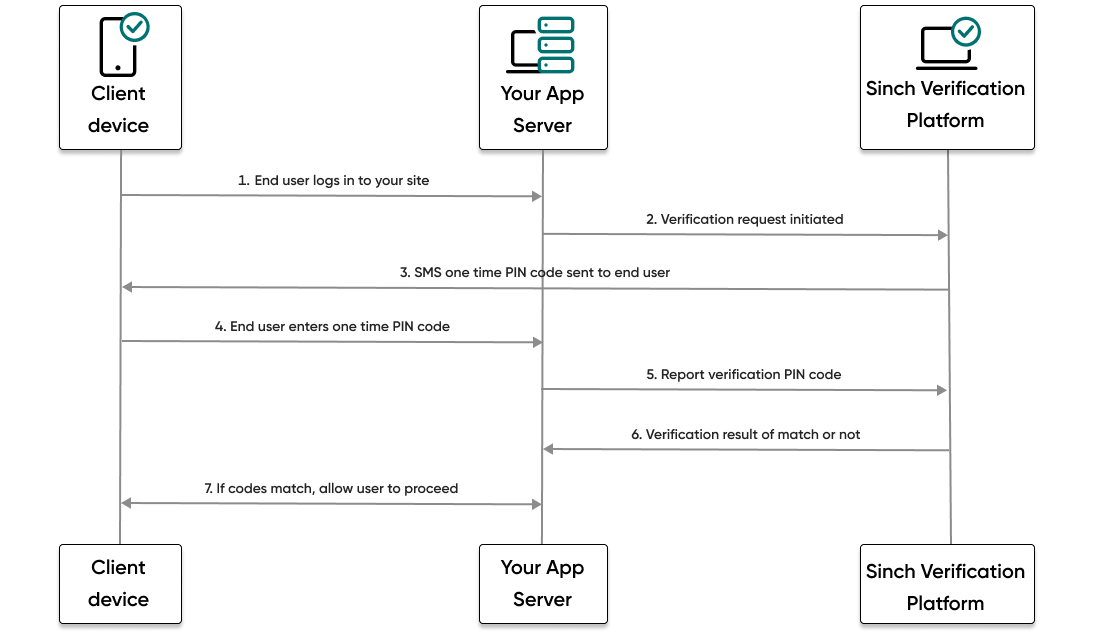 - Your backend then makes a request to the Sinch platform and initiates an SMS PIN verification request.